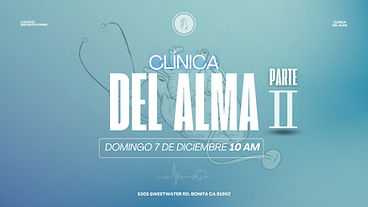 Nuestra próxima Clínica del Alma, se llevara a cabo en Sábado 01 de noviembre 2025, en punto de las 9am y la continuación o segunda parte de esta clínica será el Domingo 7 de Diciembre a las 10 am. Es una actividad la cual trata sobre problemas del alma, heridas del pasado, dificultades que el alma no ha podido sanar. Nuestra Clínica del Alma tiene como propósito sanar el alma teniendo una experiencia personal con Dios. Sin duda es una de las herramientas que todos necesitamos para avanzar en nuestro diario vivir.